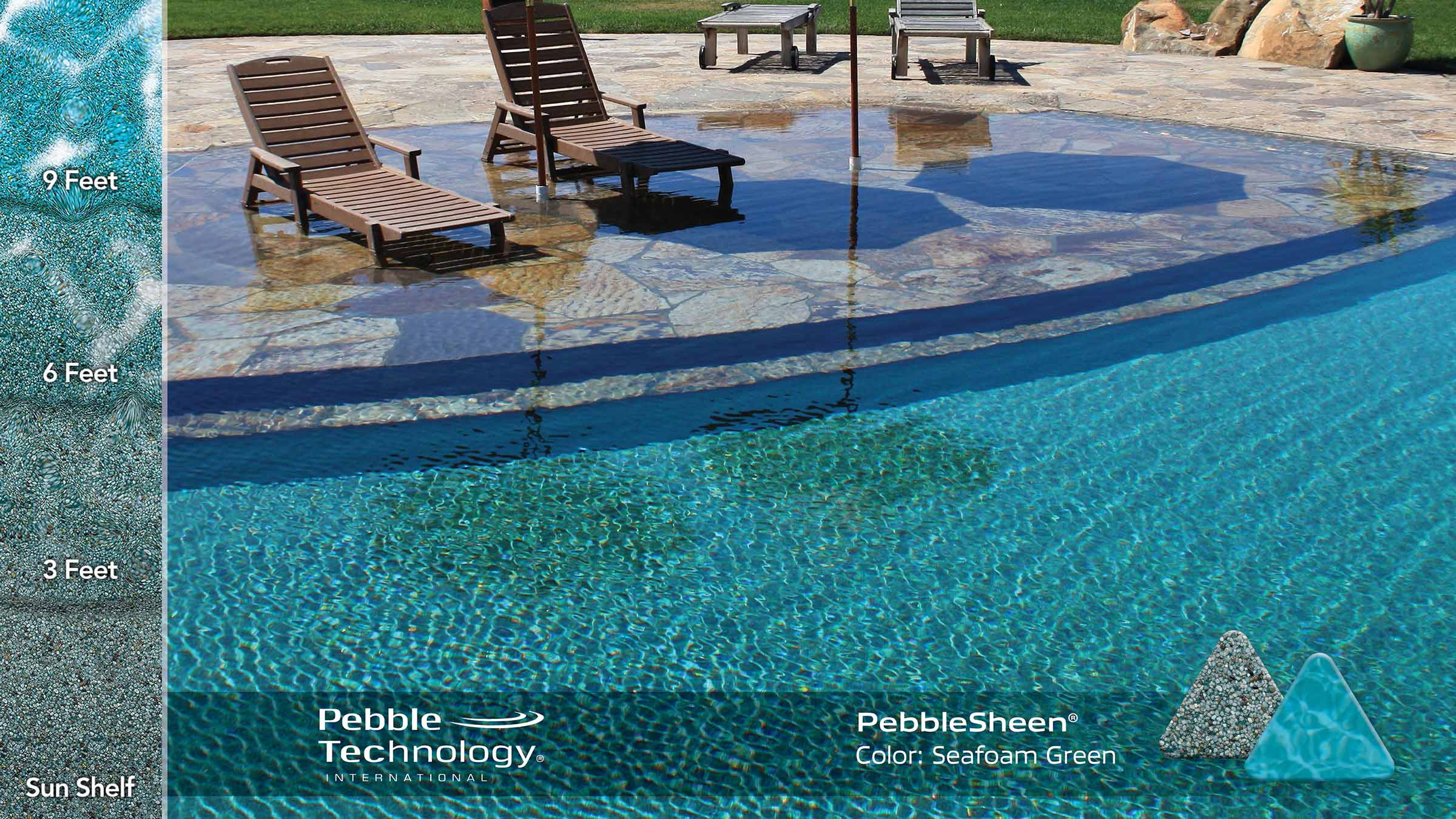 A light green finish comprised of a spectrum of jade-toned pebbles produces a medium teal to green water color.